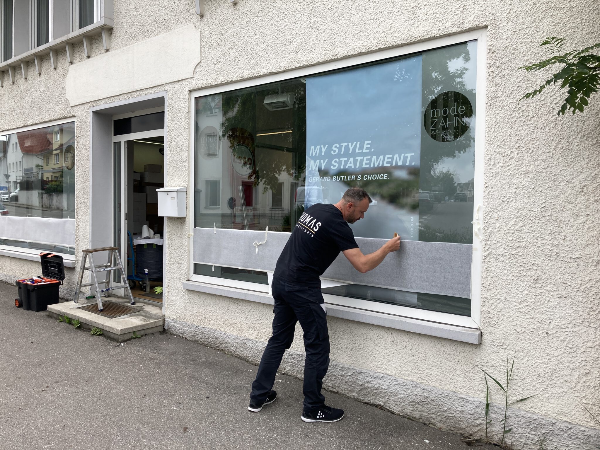 Die Produkte der Thomas-Werbetechnik bieten im Vergleich zu anderen Formen des Fenstersonnenschutzes in Bad Waldsee einige Vorteile. Sie müssen nicht auf das Tageslicht verzichten und können ferner den Energieverbrauch Ihrer Klimaanlage senken. Trotzdem sorgt die Sonnenschutzfolie zuverlässig vor dem Einfall grellen Lichts ins Büro in Bad Waldsee. Auch der Zugang zur privaten Terrasse oder zum Balkon lässt sich damit gut gegen übermäßige Sonneneinstrahlung schützen. Die Folie lässt sich individuell auf nahezu jede Fenstergröße zuschneiden. Hohe Kosten durch Sonderanfertigungen für Jalousien entfallen bei unserem Fenstersonnenschutz aus Bad Waldsee.